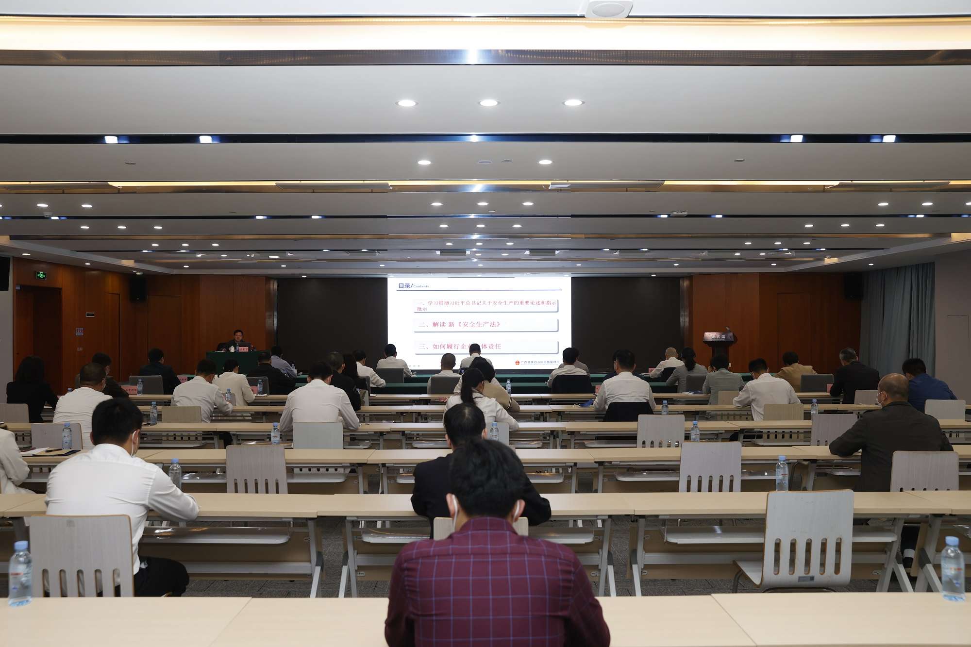 培训由集团公司副总经理谢毅主持并做动员讲话,集团公司领导班子成员、区管干部、总经理助理,总部各部门负责人、部门员工,驻邕单位领导班子成员,安全管理部门负责人参加现场会议。主会场严格落实疫情防控措施,主会场控制参会人数,开会人员间隔1米以上,邕外企业设置线上视频分会场,职工可通过手机在线观看,各企业职工纷纷踊跃参加线上学习,培训后职工反响热烈。