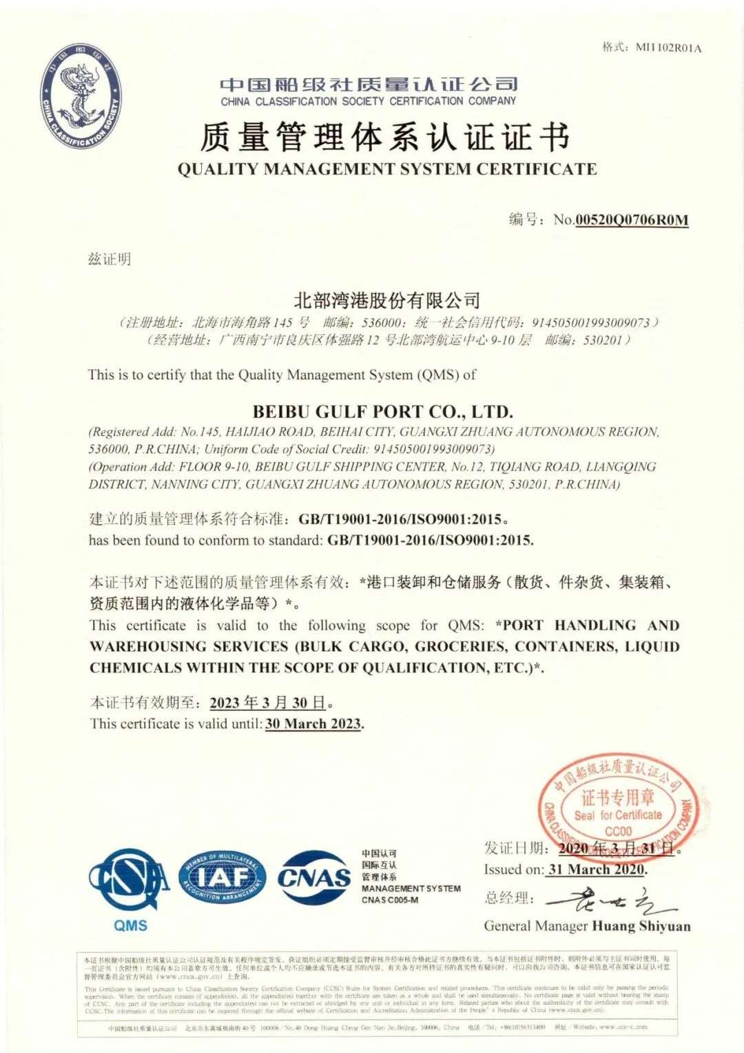持续推进管理体系建设。北港股份总部及下属公司获得质量管理体系、职业健康安全管理体系、环境管理体系认证,持续做好体系文件的编写、修订和内部滚动审核工作,推动企业科学、精细、规范管理,切实提高经营管理效率,实现向管理要效益。