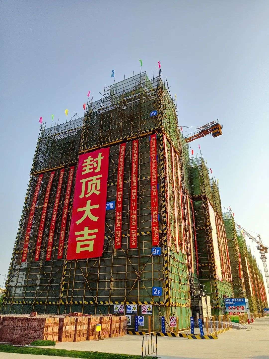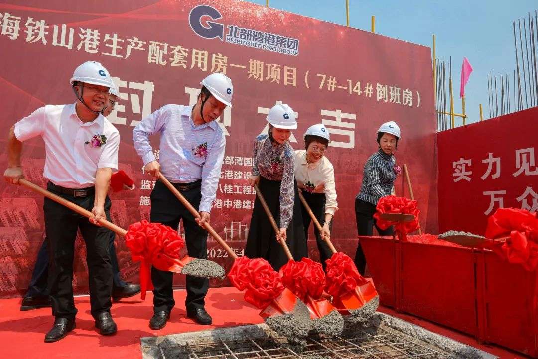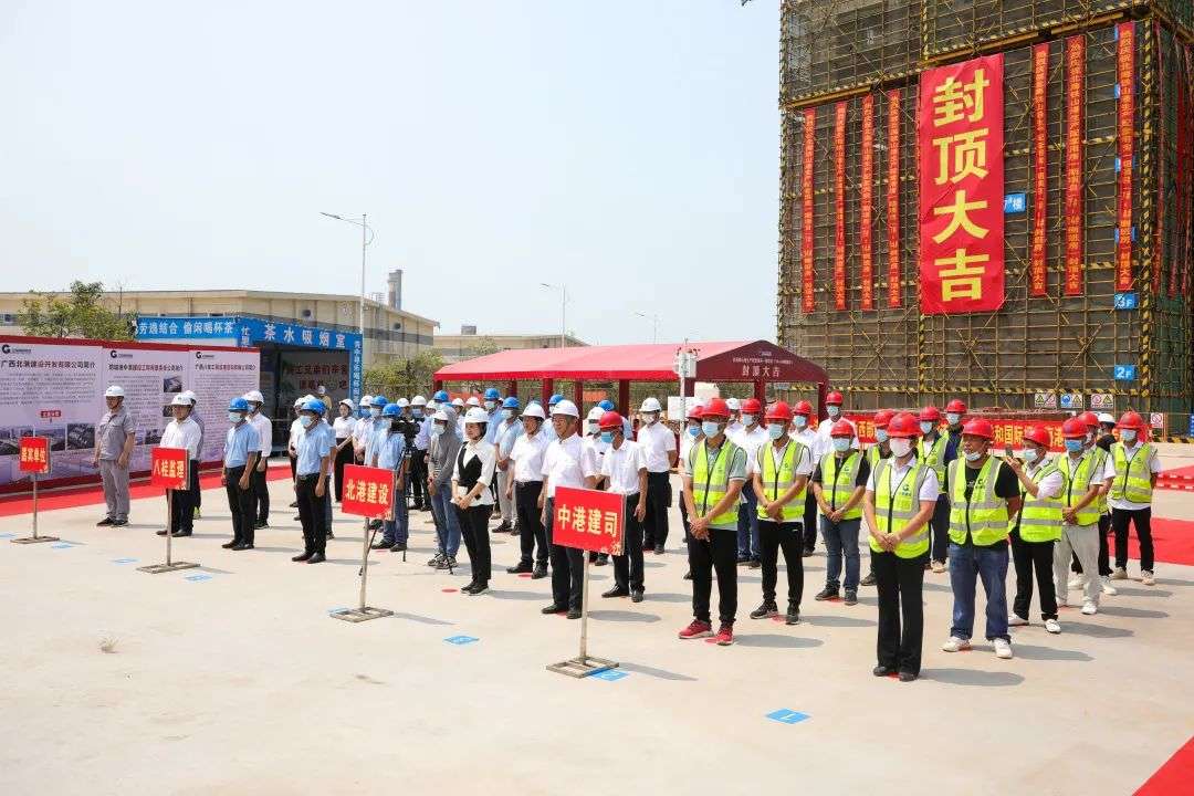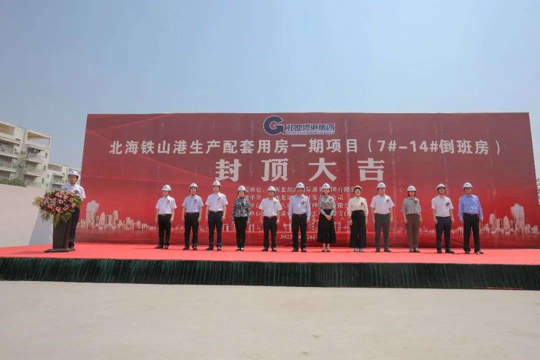 4月26日,北海铁山港西港区北暮作业区1-10#泊位生产配套用房一期项目倒班房封顶仪式圆满礼成。