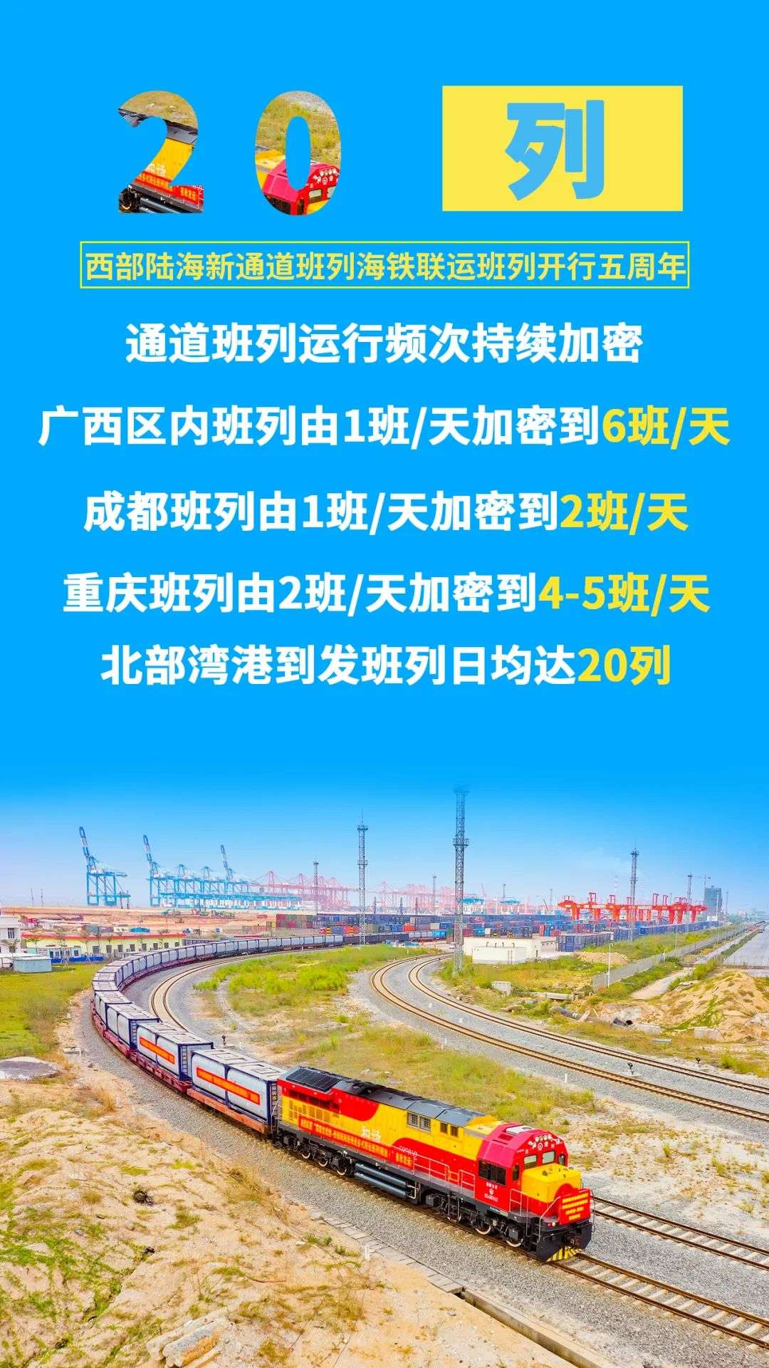 就是这趟“渝桂新”南向通道海铁联运测试班列在5年前的今天首发,开启了西部陆海新通道建设的新征程,“一带”和“一路”经由这条“新通道”完整地连接在一起。