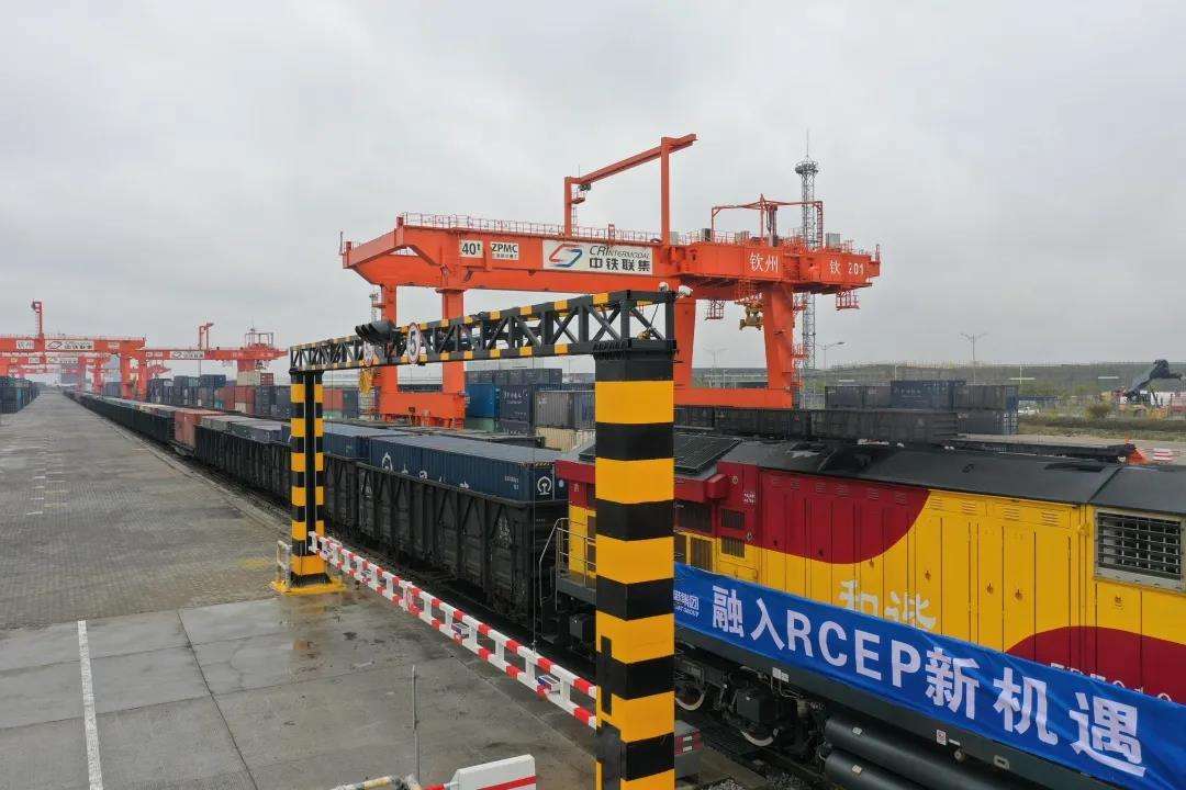 (图为北港集团积极融入RCEP,西部陆海新通道海铁班列大幅增长)