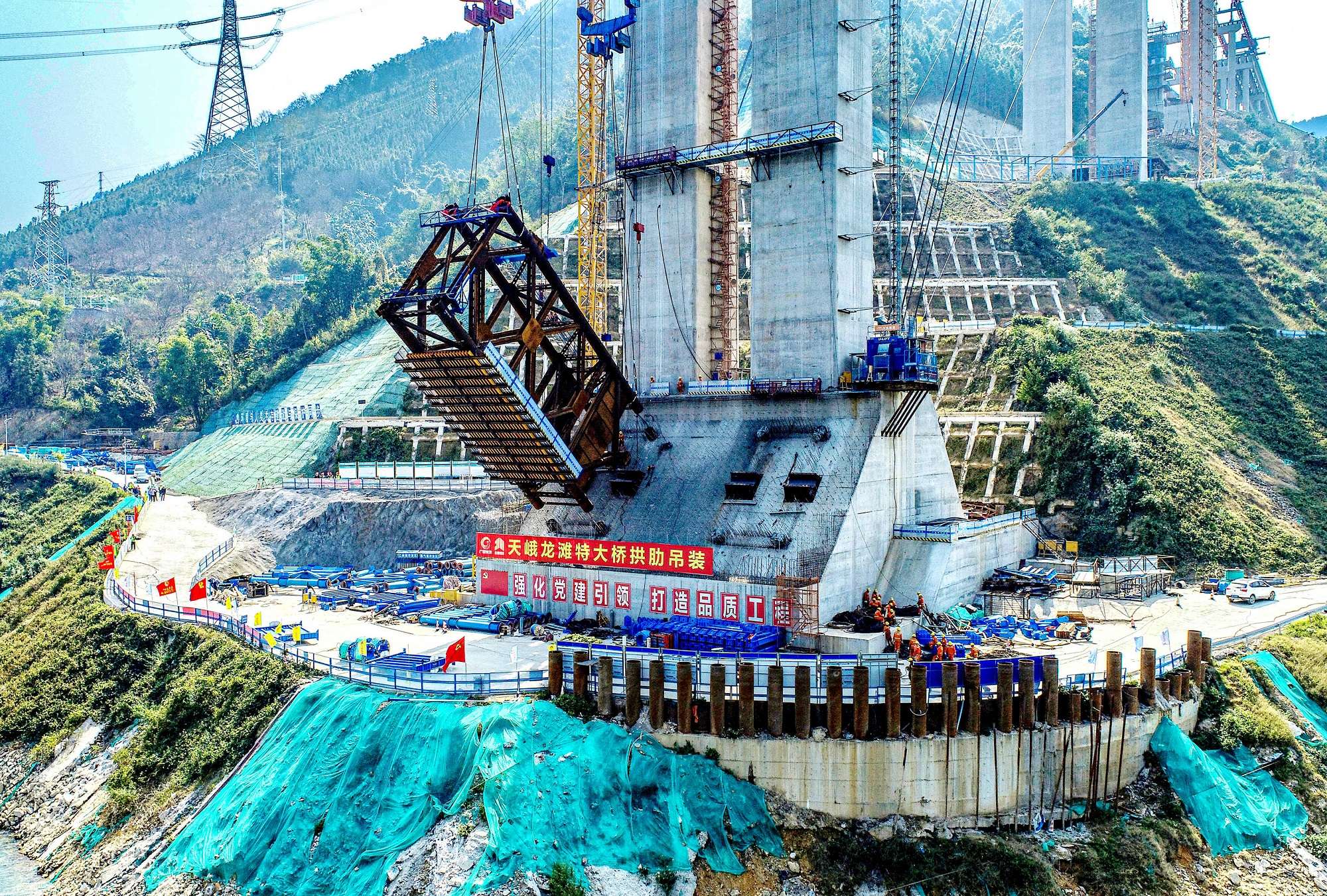 (图为广西交通投资集团投资建设的在建世界最大跨径拱桥——天峨龙滩特大桥顺利完成首节段拱肋吊装,大桥正式进入拱肋节段安装阶段)