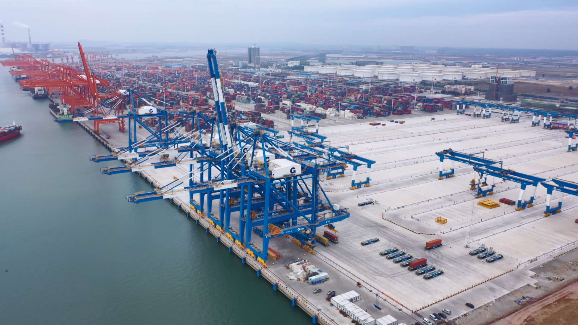 (图为北部湾港全球首创“U”型自动化码头加快推进,将于6月底正式运营)
