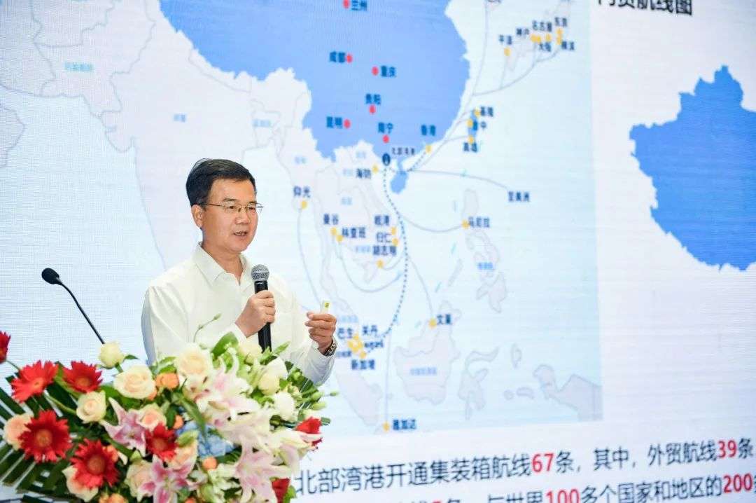 在推介会上,北部湾港集团总经理助理,北部湾港股份有限公司党委书记、总经理陈斯禄从国家战略和政策机遇叠加以及“区位优、设施优、服务优、潜力优”四个方面向大家介绍北部湾国际门户港。