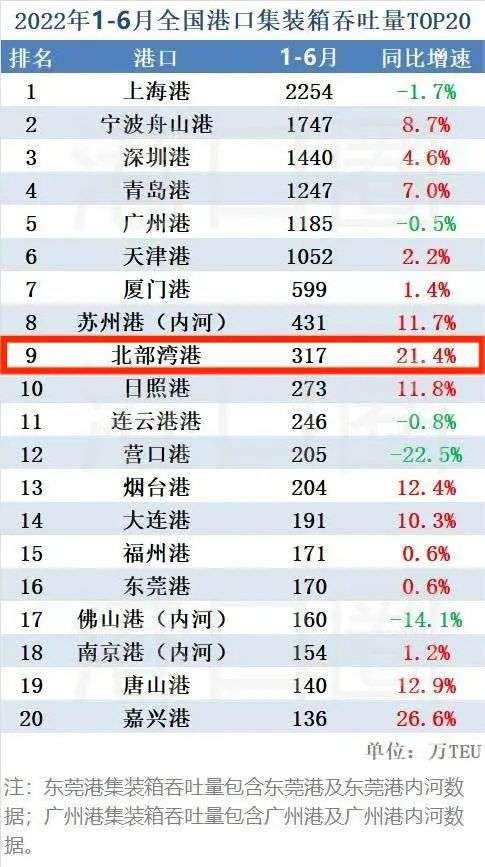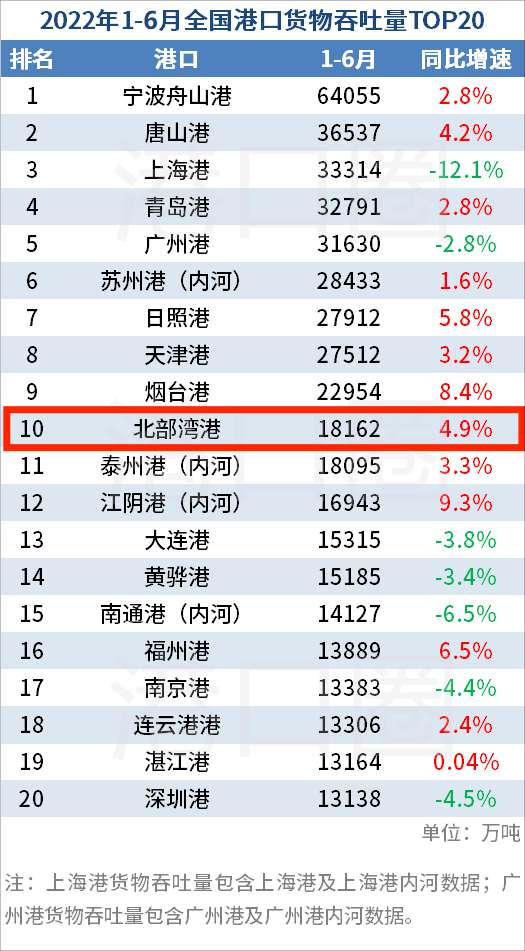 上半年全国港口“成绩单”揭晓!北部湾港集装箱增速第一