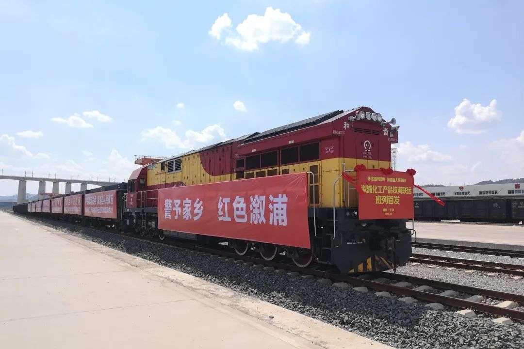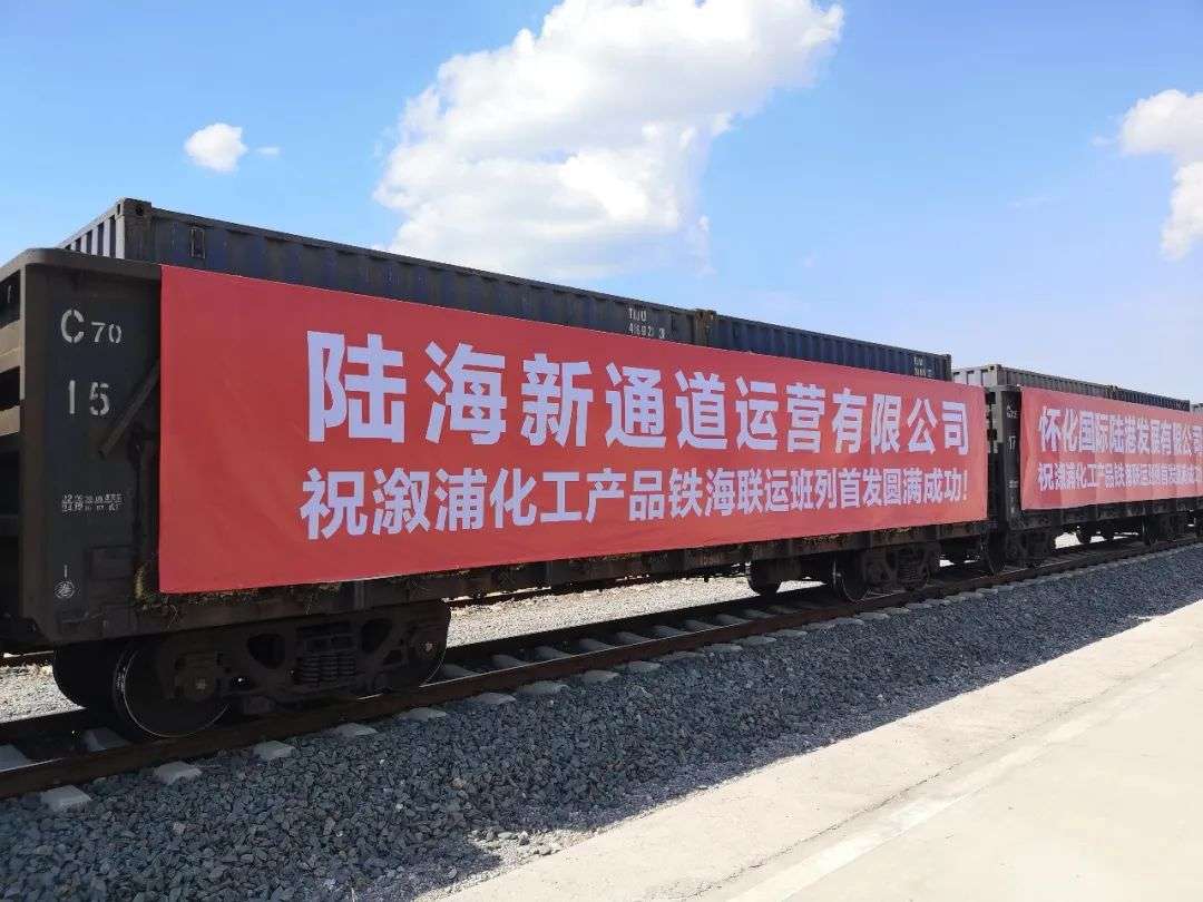 8月19日下午3时许,一列20标箱满载着怀化市溆浦县湘维公司生产的化工产品,搭乘陆海新通道“怀化——北部湾港”铁海联运班列从怀化国际陆港鸣笛发运。