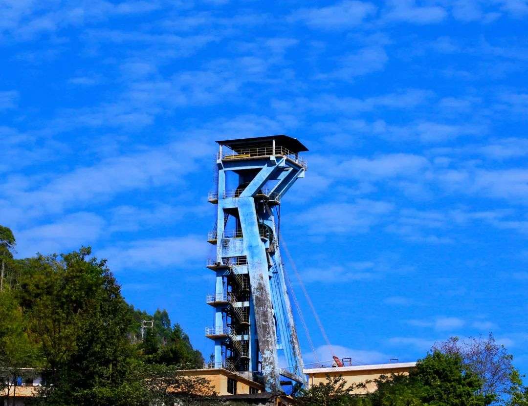 上图即为华锡集团下属的高峰公司目前已有的竖井塔,该塔深度达543m,作业人员从地面乘坐罐笼到井下200m水平,再乘坐矿井交通工具经过两级盲斜井到矿井最深处作业,整个下矿过程就要耗费一个多小时。