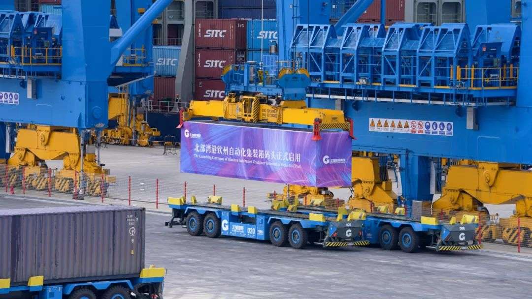2022年6月,钦州港自动化集装箱码头启用,成为全球首创、全国首个U型工艺的海铁联运自动化码头,为智慧港口建设贡献“北部湾港力量”。