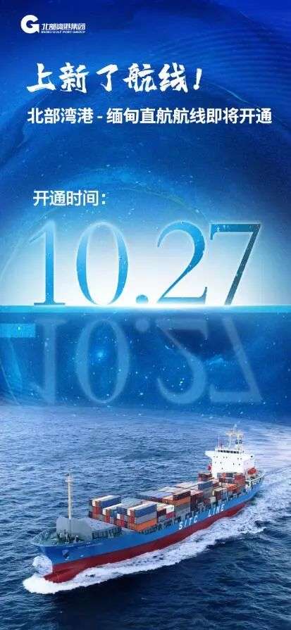 北部湾港至缅甸的直航航线将于10月27日与大家“见面”。