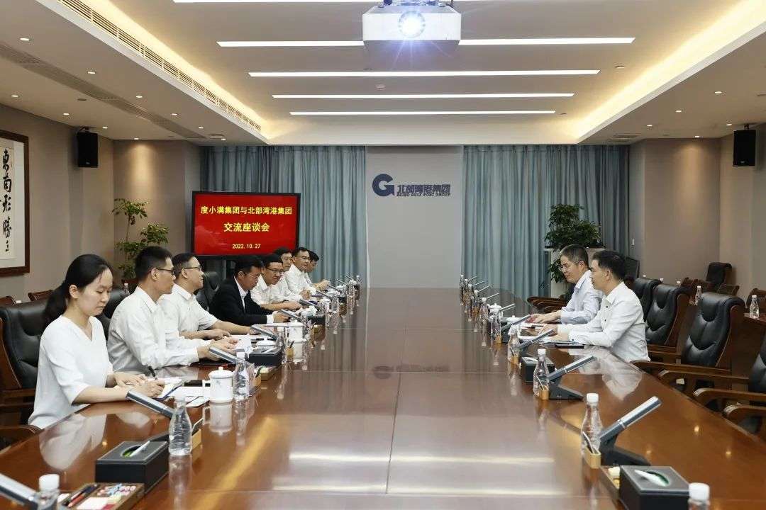10月27日,北部湾港集团党委副书记、副董事长、总经理周少波在北部湾航运中心与到访的百度公司旗下度小满集团副总裁、度小满供应链科技公司董事长徐仁艳一行座谈,双方就供应链金融业务合作进行了深入交流。