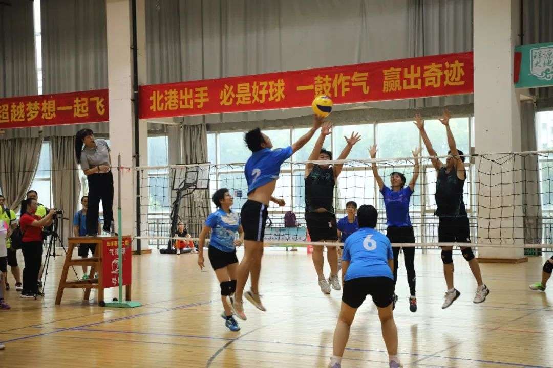 “气”势如虹的排球比赛出精彩,发球、垫球、拦网、扣球,各队队员们敢打敢拼、默契配合,把力争第一和永不言弃的体育精神,发挥得淋漓尽致。