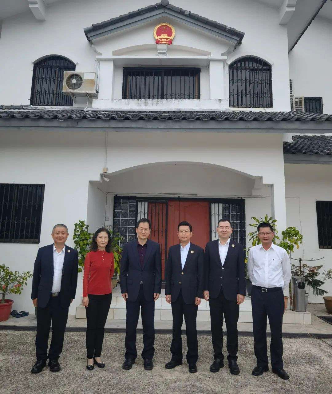 3月1日上午,周少波一行拜访中国驻文莱大使馆,与王海涛临时代办会面,使馆参赞康文、一秘宋金培会面时在座。