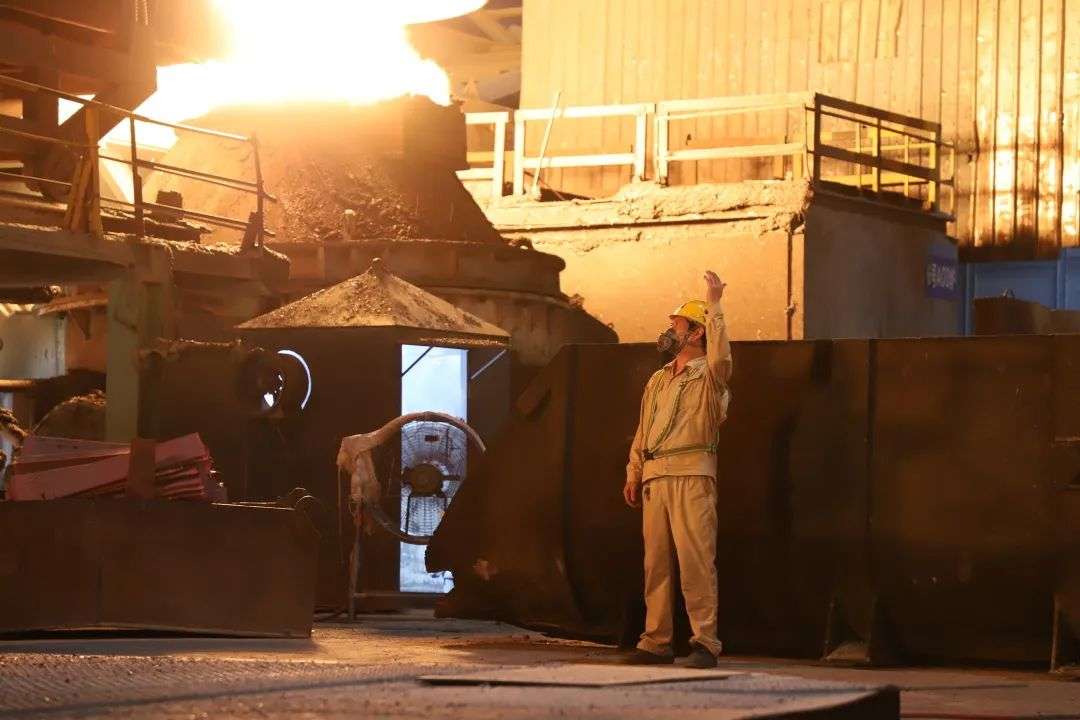 踏上北港新材料一炼钢厂AOD炉平台,一股热浪迎面袭来,炼钢炉正在运转,巨大的吊罐伴随着阵阵警铃声响从上空滑过……