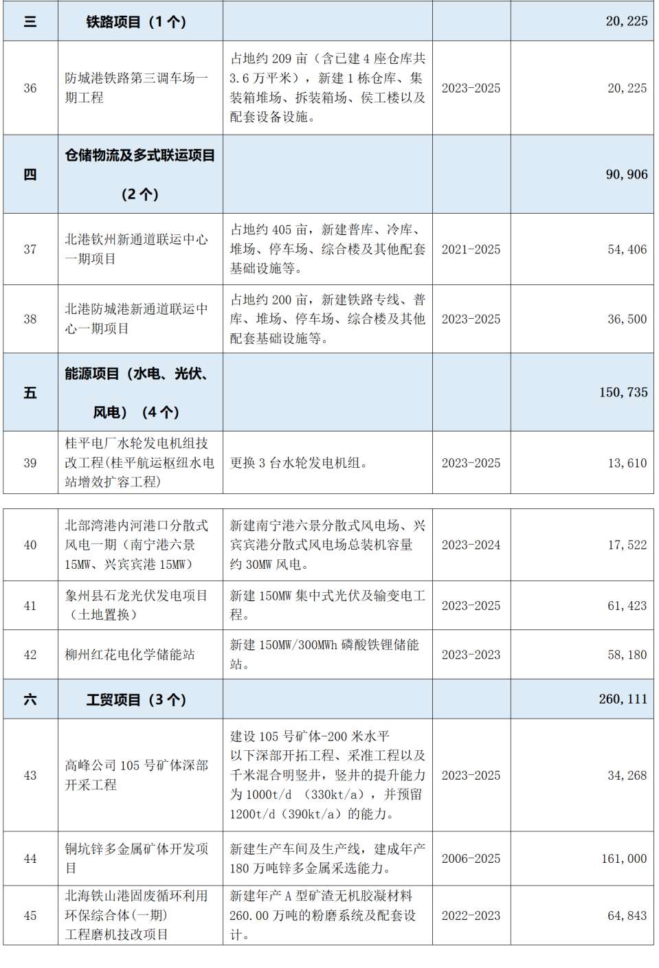2023年北部湾港集团45个重大工程项目,总投资1045亿元,项目包括北部湾港项目、黄金水道项目、铁路项目、仓储物流及多式联运项目、能源项目、工贸项目六类。