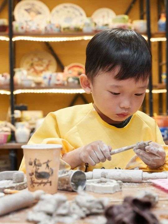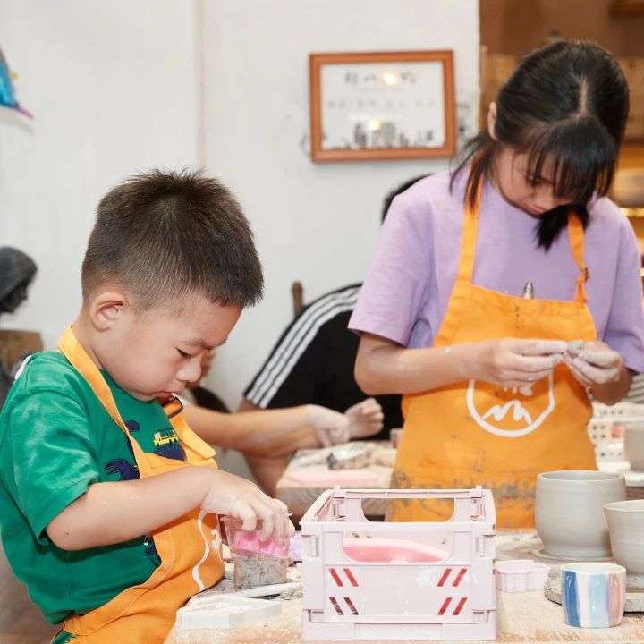 在航桂实业,50余名孩子和家长开展了亲子DIY手工体验活动,大小朋友们齐动手,共同亲手制作陶艺作品和五彩音乐盒,让小朋友们在“玩泥巴”、“贴花花”的快乐氛围中感受童真。