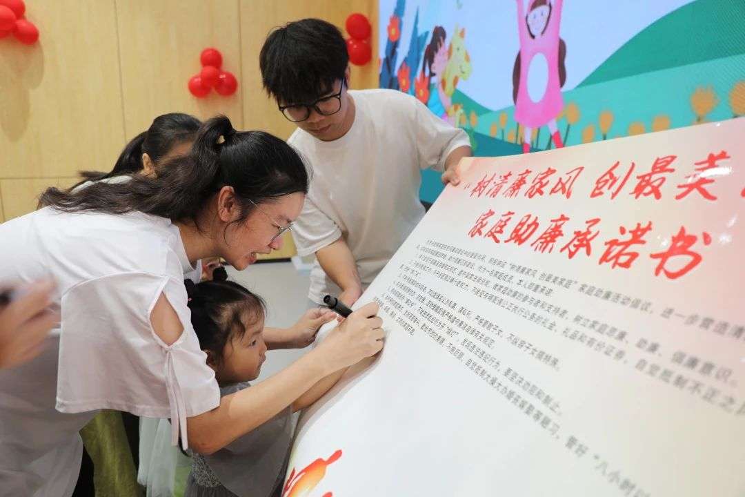 在北港大数据,孩子们以朗诵经典诗歌和讲述廉洁故事为载体,分享自己对“清廉”的感悟和理解。活动还通过集体签订《家庭助廉承诺书》、绘制廉政画卷等多种形式,让孩子们在轻松愉快的氛围中学习并感受廉洁家风的力量。