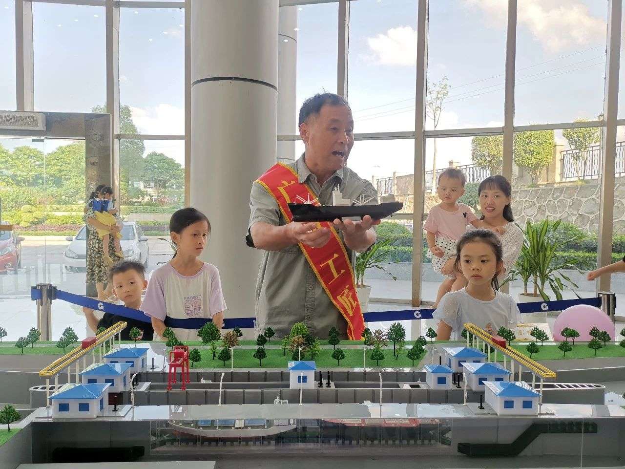 在西江船闸,全国交通运输系统劳模、广西工匠汤全清向小朋友们介绍船闸的工作原理,并邀请小朋友们一起体验模拟乘船过闸。小朋友们听着汤师傅亲切的话语,生动直观的讲解,对西江船闸有了一个初步的印象。