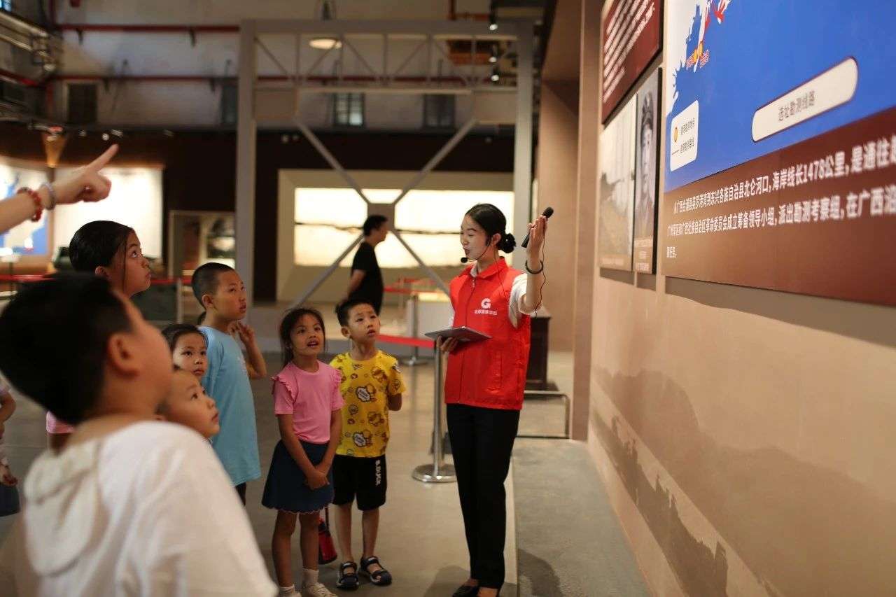 解说员精彩的讲解,结合建港历史物件的展示,建港55年的一幕幕栩栩如生再现眼前,让小朋友们全方位的了解防城港是如何从一个边陲小渔村发展成为亿吨大港的奋斗历史。