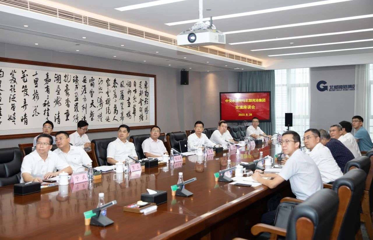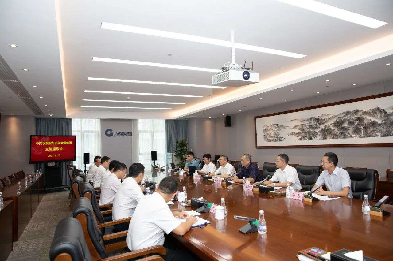 中交水规院总经理助理蔡翠苏、副总工程师陈际丰,全国工程勘察设计大师吴澎,集团公司办公室、工程管理部,北港股份、北港西江港口、北港建设等有关负责同志参加座谈。