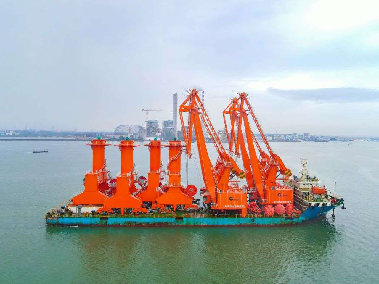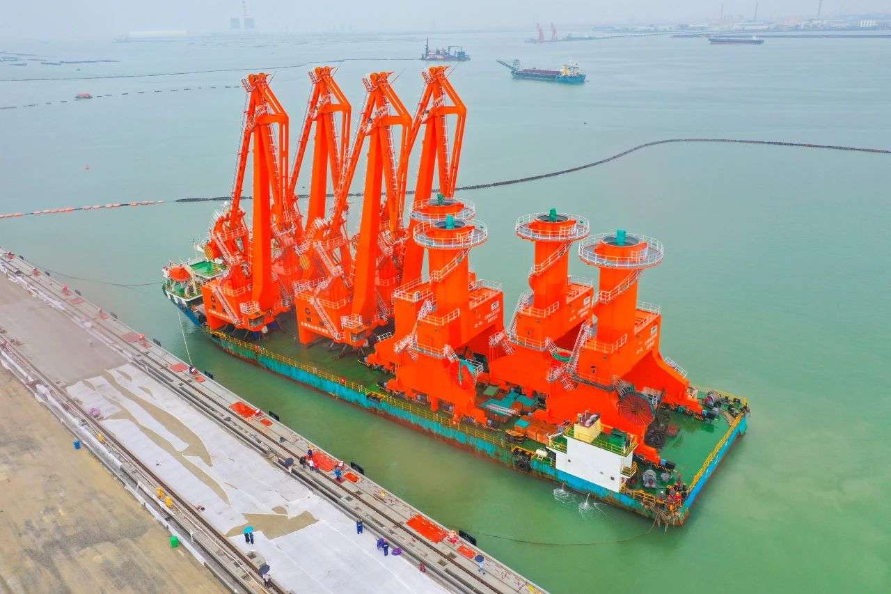 近日,6台印有“北部湾港”标识的门座起重机,先后在北海铁山港区东岸码头顺利完成靠卸,这标志着码头建设进入港机安装阶段,此次靠卸成功也为今年年底码头的建成交付打下坚实基础。