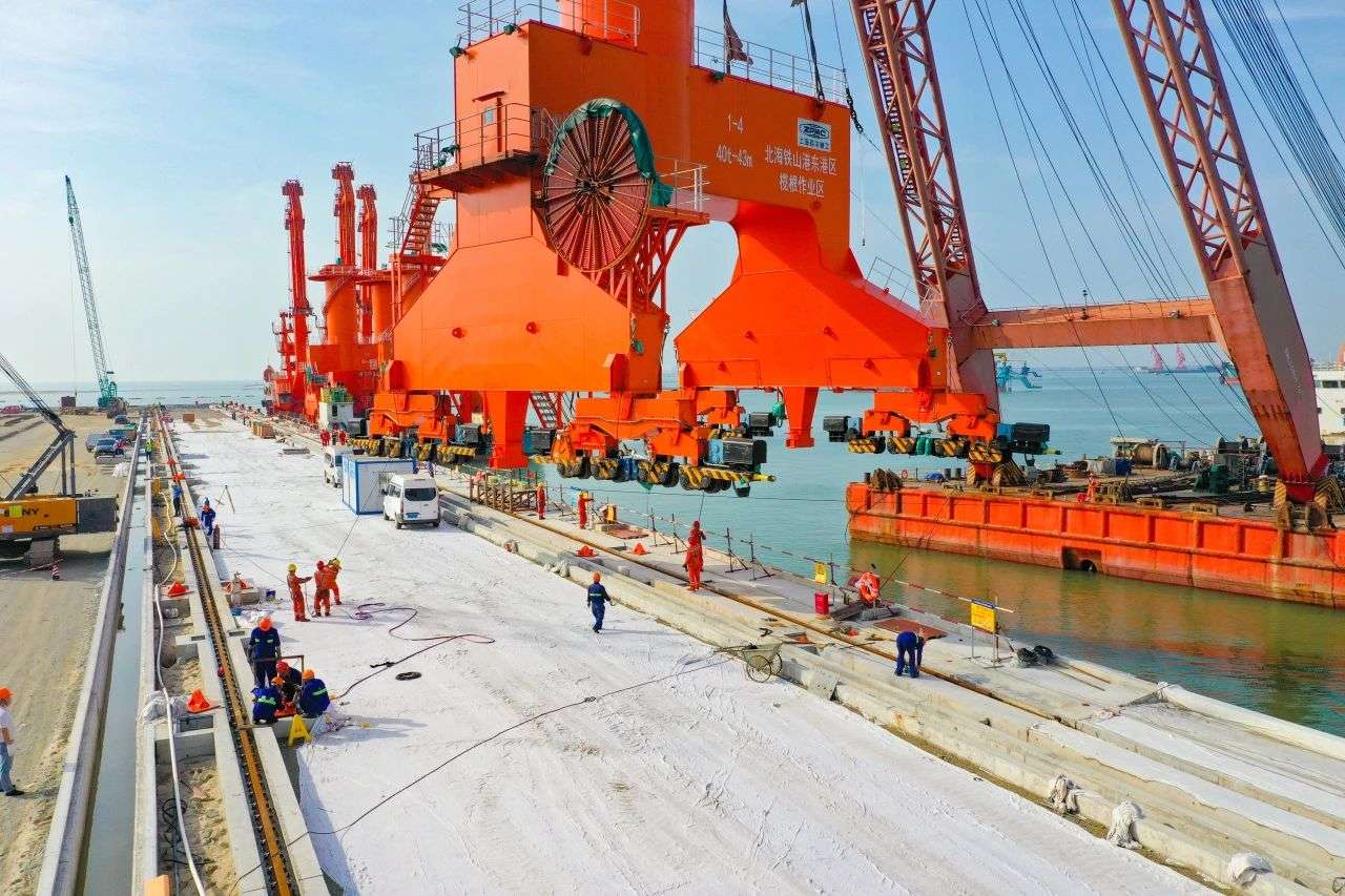钢铁巨人入列 北部湾港北海铁山港区东岸码头迎来首批门机