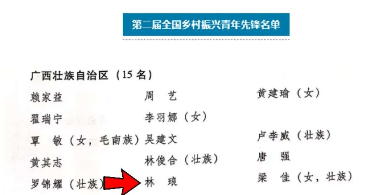 林琅,2020-2021年派驻河池市大化县百马乡同社村担任驻村工作队员,2021-2023年派驻防城港市上思县在妙镇佛子村担任驻村第一书记,先后荣获第二届全国乡村振兴青年先锋、防城港市优秀驻村第一书记、乡村振兴先进个人、工作标兵,北部湾港集团“奋进北港人”、优秀共产党员、先进工作者、青年扶贫先锋等荣誉。在他驻村帮扶期间,坚持党建引领,因地制宜,通过“党支部+村民合作社+多种集体经济发展”的形式,实现以自主经营项目为主的高质量发展,推动佛子村集体经济首次突破百万元大关,成为防城港市首个百万元集体经济强村,佛子村(思奉香糯)荣获全国第十二批“一村一品”示范村镇,广西脱贫攻坚先进集体、广西民族特色村寨、广西乡村振兴改革集成优秀试点村、广西第二批示范性农村集体经济组织等荣誉。