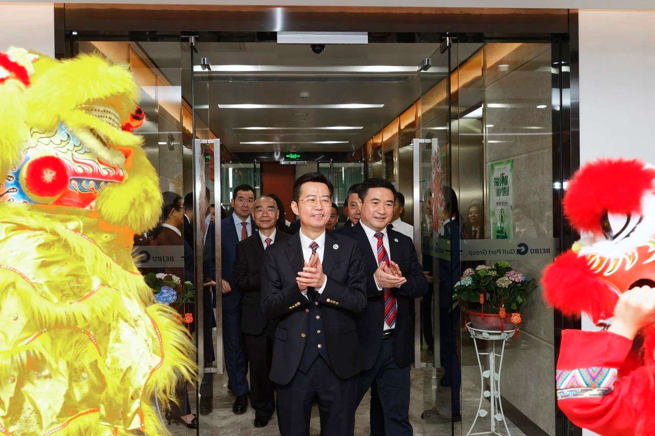 鸣锣开市,在北部湾港股份,周少波敲响北部湾港新年高质量发展新号角,“锵……”伴随着一声响亮的铜锣之音!送来集团公司领导班子的龙年新春祝福。