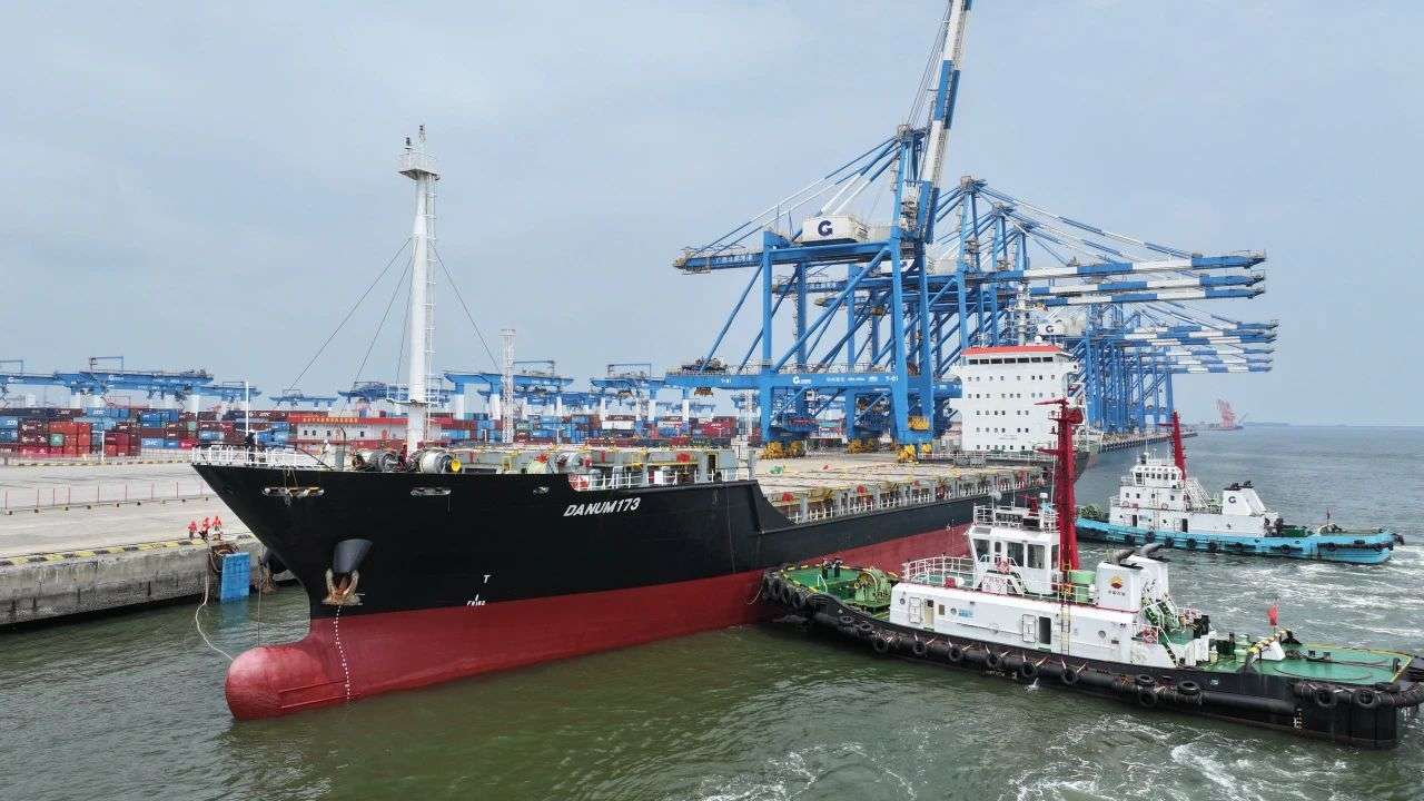 5月30日下午,在北部湾港钦州自动化集装箱码头,随着马来西亚籍“丹娜173”轮稳稳靠泊,北部湾港往来马来西亚的直航航线再添一条,达到12条,北部湾港与RCEP国家直航精品航线网络进一步优化织密。