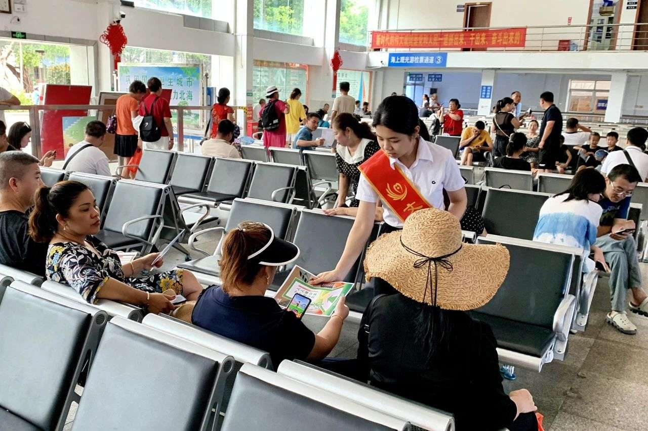 通过在“北港邮”系列船舶上悬挂满旗,客运站内循环播放航运宣传片等形式,营造浓厚的节日氛围。同时,联合自治区交通运输综合行政执法局第十一支队开展航海宣传活动。共向市民群众发放宣传资料百余份,并通过现场问答互动方式促进市民群众对航海日的由来、航运科学知识、有关法律法规的理解。