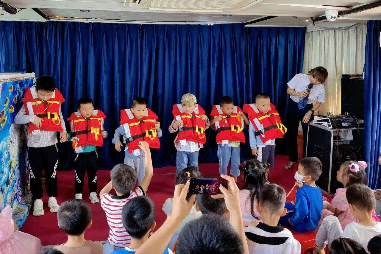以“热爱海洋、热爱生活”为题,以喜闻乐见的现场教学方式,为30余名小朋友开展一堂生动的海事实践课。船员向小朋友们详细介绍了船舶构造、常见标识、设施设备、航海技巧,并体验了救生设备的使用方法。船舶海上航行过程中,船员通过引导孩子们观察更直观的认识常见航标的分类和用途,使孩子们对航运工作建立了更深层次的认识,进一步提高孩子们对航运的参与感、体验感、真实感。